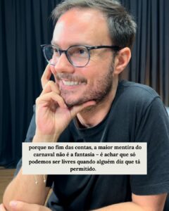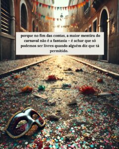 talvez a quarta-feira de cinzas não seja só o fim da festa. talvez seja um lembrete. de que dá pra carregar um pouco da ousadia, da leveza, da coragem de ser quem quiser, mesmo sem confete jogado do alto. porque no fim das contas, a maior mentira do carnaval não é a fantasia – é achar que só podemos ser livres quando alguém diz que tá permitido.