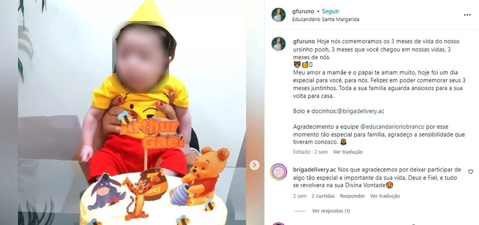 Em outra publicação, do dia 11 de outubro, Gilmara exibe a comemoração de três meses de vida do bebê, em uma festa realizada no educandário. Ela diz que a família está ansiosa pelo retorno de Arthur Gael, e agradece à administração do abrigo por permitir a festa.