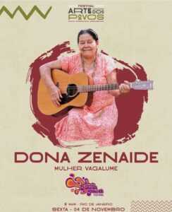 A cantora e compositora acreana Zenaide Parteira, mestra de saberes tradicionais, natural do município de Tarauacá, apresenta o show Mulher Vagalume no Festival Arte dos Povos, que acontecerá no Museu de Arte Moderna do Rio de Janeiro do dia 3 ao dia 6 de novembro. Sua obra é um retrato das lutas sociais e uma exaltação aos saberes da floresta amazônica.