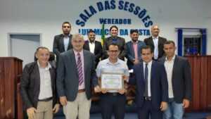 A moção de aplauso, entregue durante solenidade ocorrida na sessão plenária desta quinta-feira (27), partiu do vereador Gilmar da Saúde, e foi aprovada por unanimidade pelos demais parlamentares.