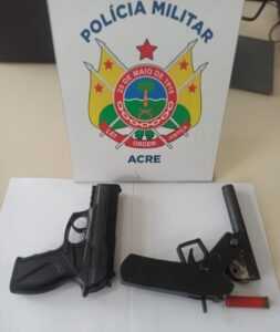 Na manhã desta sexta-feira, 30, policiais militares do 2º Batalhão da Polícia Militar do Acre (PMAC) prenderam um homem e apreenderam um adolescente, no bairro 6 de Agosto, com uma moto roubada, uma arma de fogo artesanal e um simulacro.