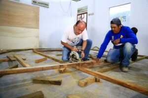 “Estamos a todo vapor por conta de várias famílias que chegam toda hora devido a cheia do rio, os desabrigados são inúmeros e todos vêm para o parque. A prefeitura está a todo vapor prestando a assistência a essa população e como vocês podem ver, o próprio prefeito está ajudando, pegou o martelo e também está ajudando na confecção dos boxes que estão servindo de abrigo para essas pessoas”, esclareceu.